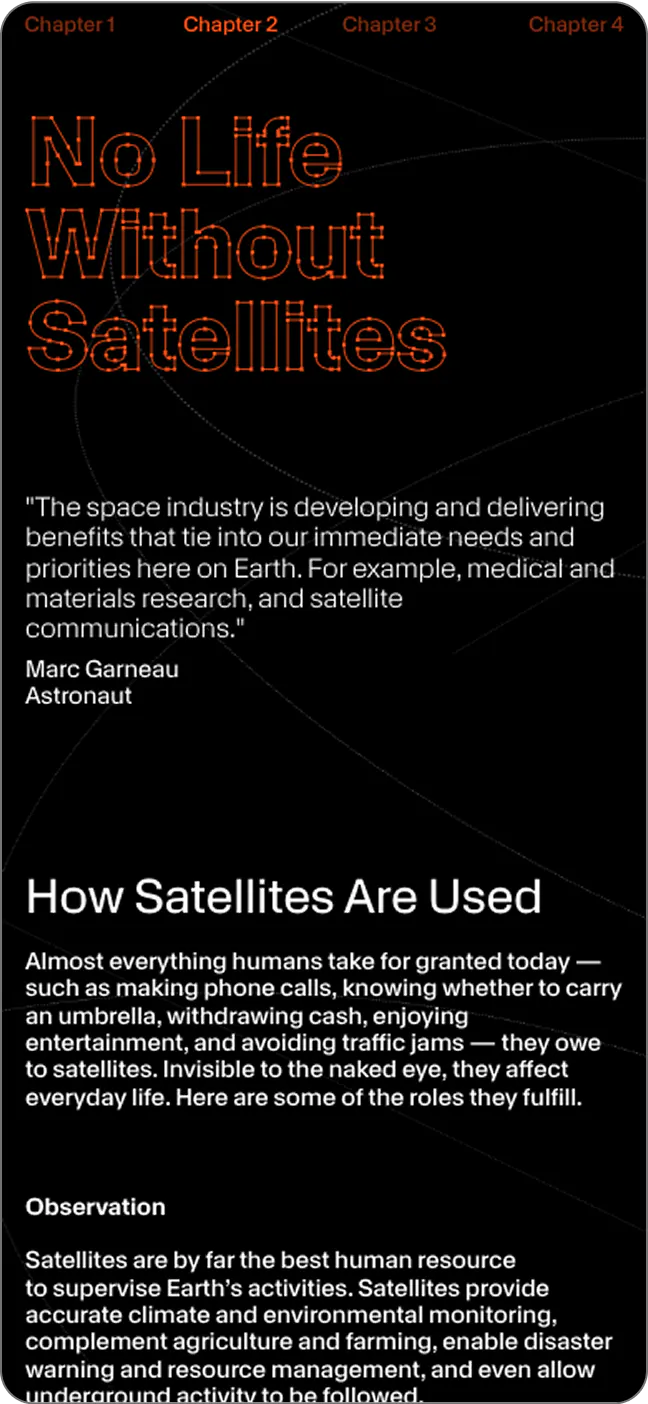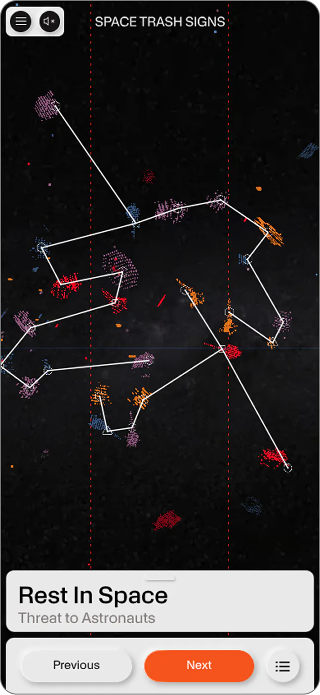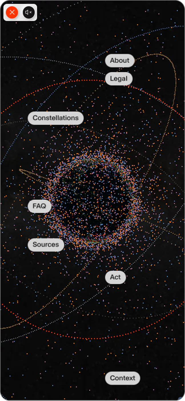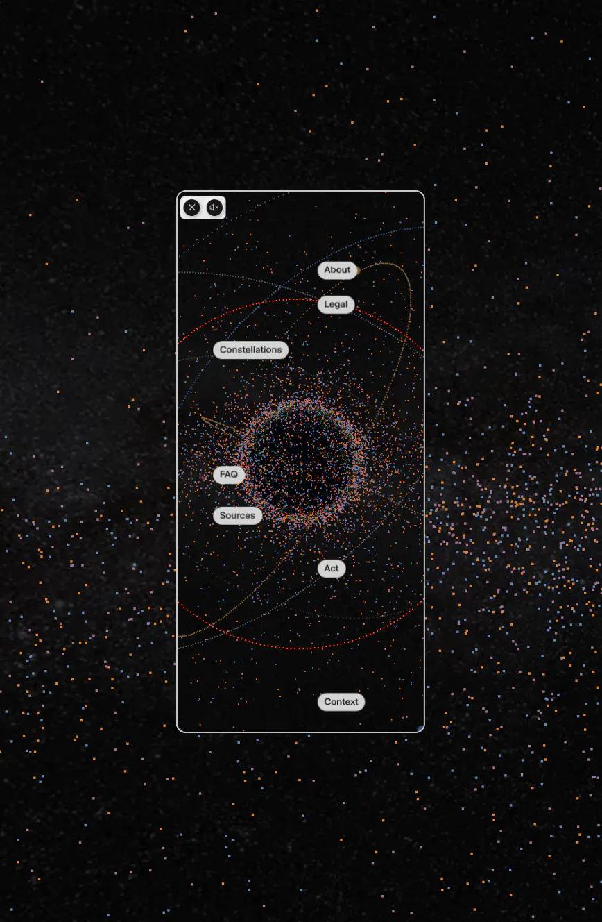 Our role in the project was to build an in-browser interactive experience using WebGL. Based on the Three.js particle system, we created a dynamic camera system that enables immersive exploration of the constellation of signs. This approach allows the 3D world to blend seamlessly with the user interface, ensuring smooth transitions between different viewing perspectives, always in sync with the site navigation.